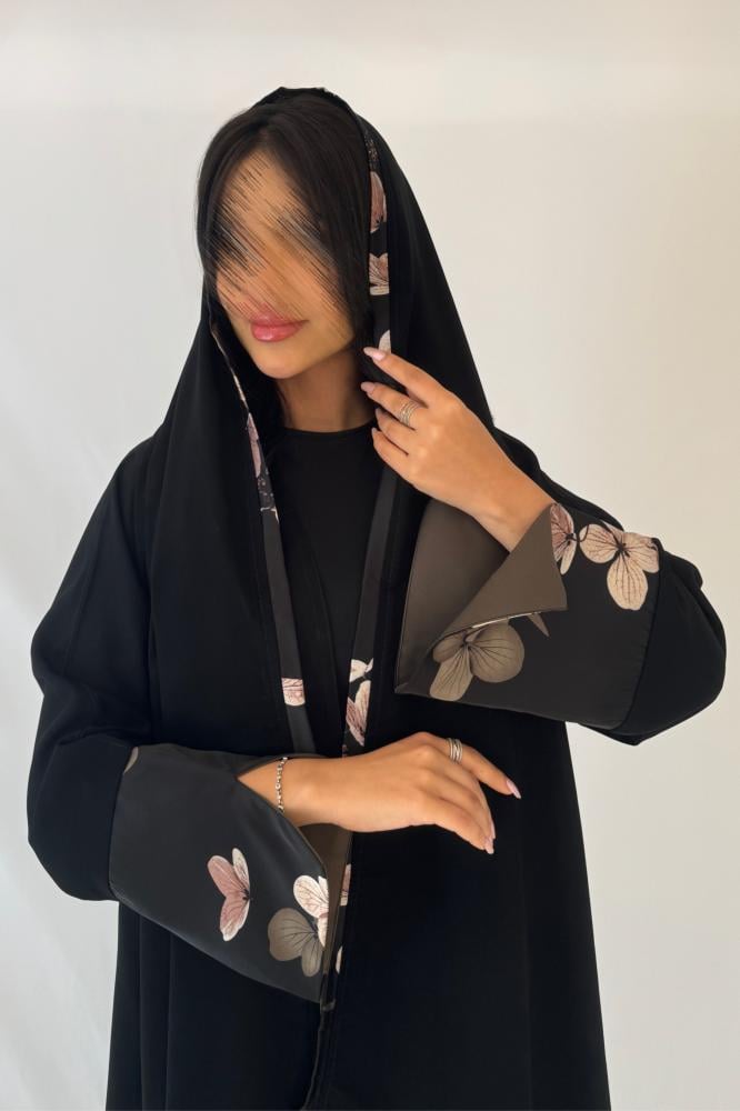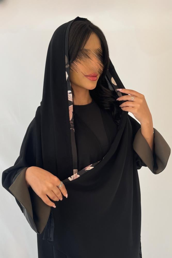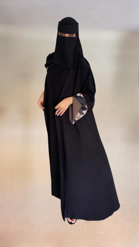 نوع القماش : كريب اسود مع حرير مورد بالاكمام